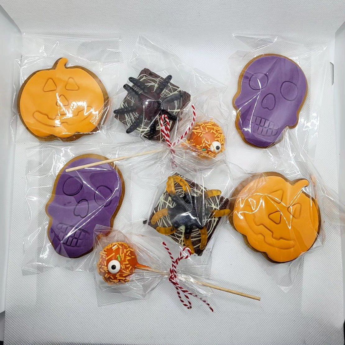 Patrunde in atmosfera sarbatorii cu selectia noastra speciala de prajituri tematice! Fie ca optezi pentru un Cake Pop misterios, un Brownie intunecat si ciocolatos sau un Fursec in forma de Dovleac sau Craniu, realizat din miere pura si decorat artistic cu pasta de zahar, fiecare bucatica este creata pentru a bantui papilele gustative cu placere. Ideale pentru petreceri de Halloween sau pentru a aduce un strop de magie in fiecare zi, aceste delicii sunt gata sa te surprinda. Alege-ti preferatele si lasa-te vrajit de gusturile sarbatorii